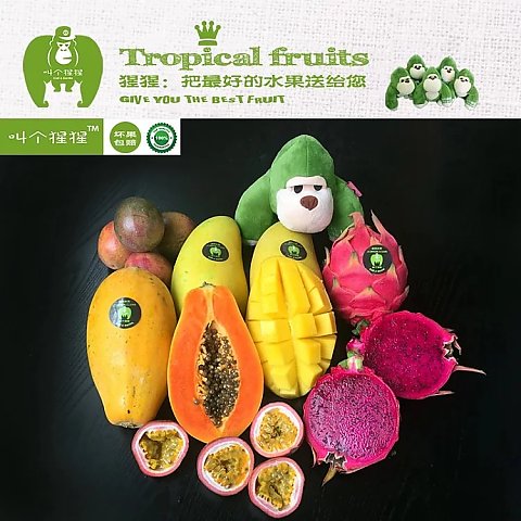 【當(dāng)季水果】大吉大利水果套餐,發(fā)外省快遞順豐包郵,(不含偏遠(yuǎn)省份)。甜甜蜜蜜,大吉大利把最好的水果獻(xiàn)給你。套餐水果包含:本地金煌芒2個(gè)(約2斤)、 紅心火龍果2個(gè)(約2.5斤)、 紅心木瓜一個(gè)(約2斤)、百香果5個(gè)。浪漫情人節(jié),讓猩猩陪在你身邊!